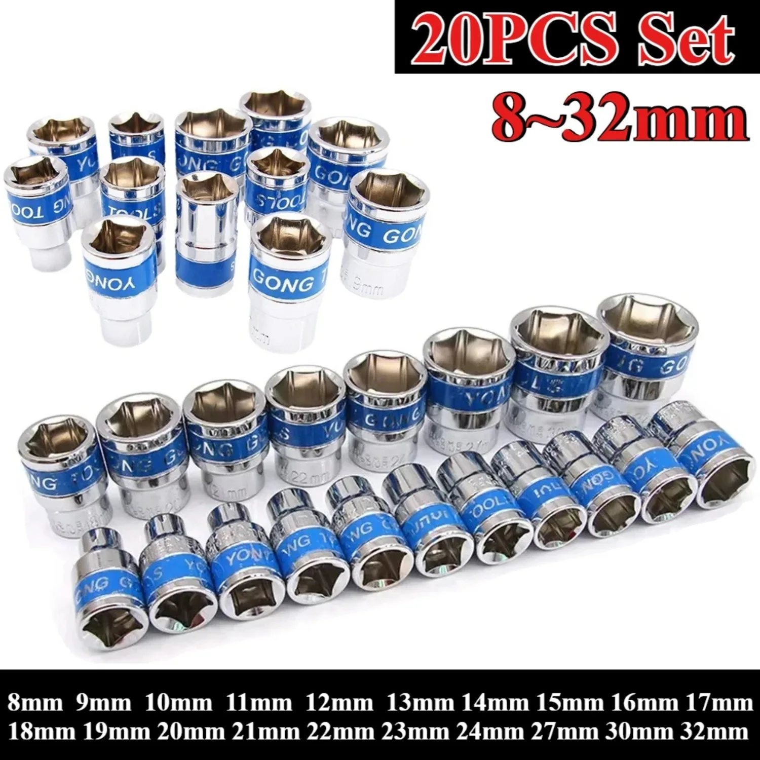 8-32mm 1/2 Inch Hex Metrische Korte Socket CR-V Ratelsleutel Sockets Ratelsleutel Tool Kit Impact Socket voor Auto Auto Reparatie