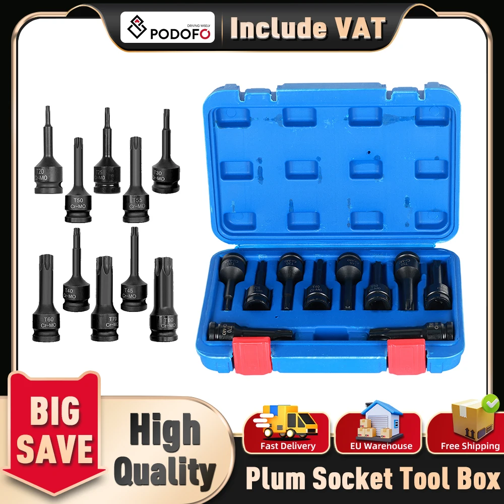 Podofo 10-delige Impact Hex Allen Bit Socket Set, 1/2 inch Cr-Mo Steel T20 - T80 Sleutels Schroevendraaier Bit Socket Impact Wrench Gereedschap