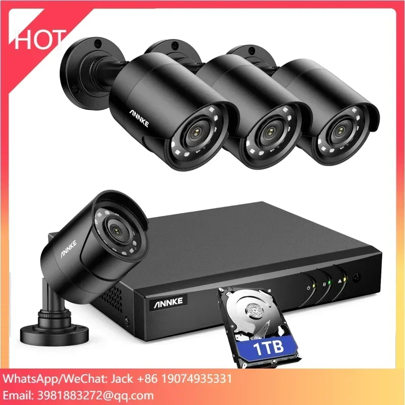 ANNKE 8CH 5MP H.265+ 5-in-1 DVR beveiliging camerasysteem 4 stuks 1080p buiten IP66 waterdichte bewakingscamera's