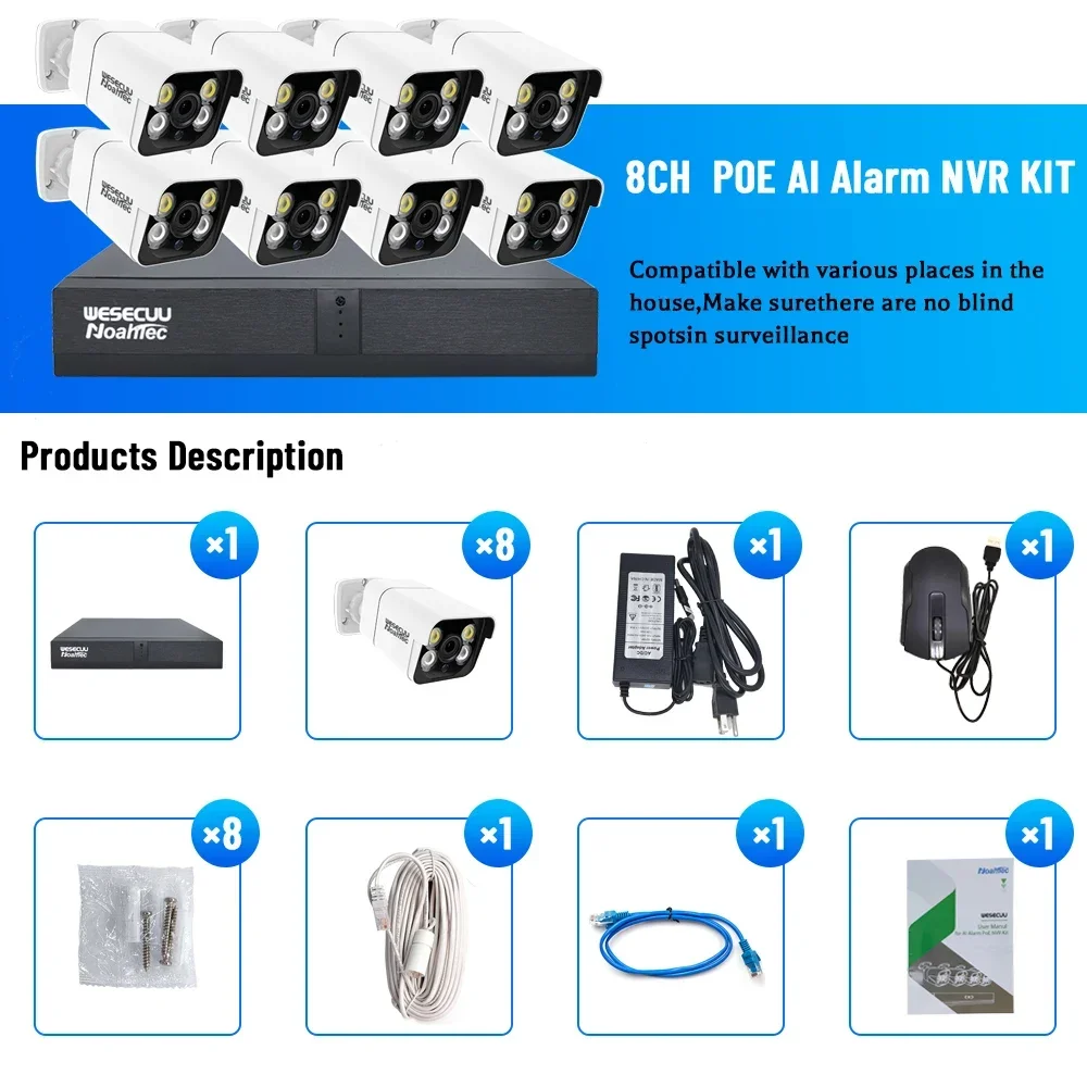 Fabrikant 5mp 4k 8mp 4 8 16 Kanaals HD AI IP PoE NVR Home Outdoor Beveiligingscamera Surveillance CCTV Systeem Kit Met Camera