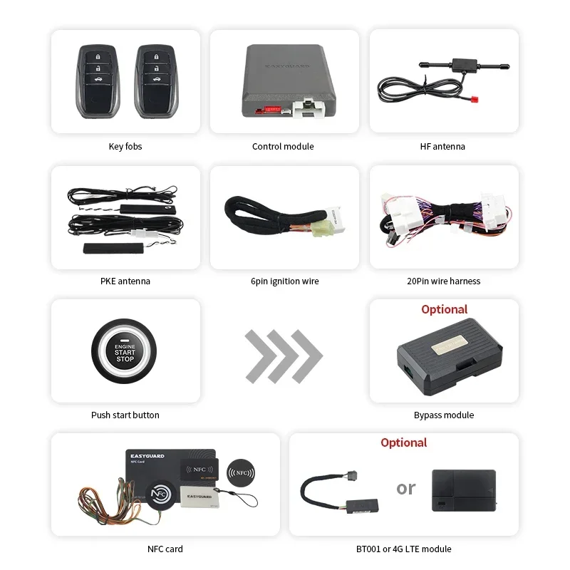 EASYGUARD Semi-plug & play autoalarm geschikt voor E Z/ REZI / Tundra/ Land Cruiser/Prado/ Vios Passieve Sleutelloze Toegang
