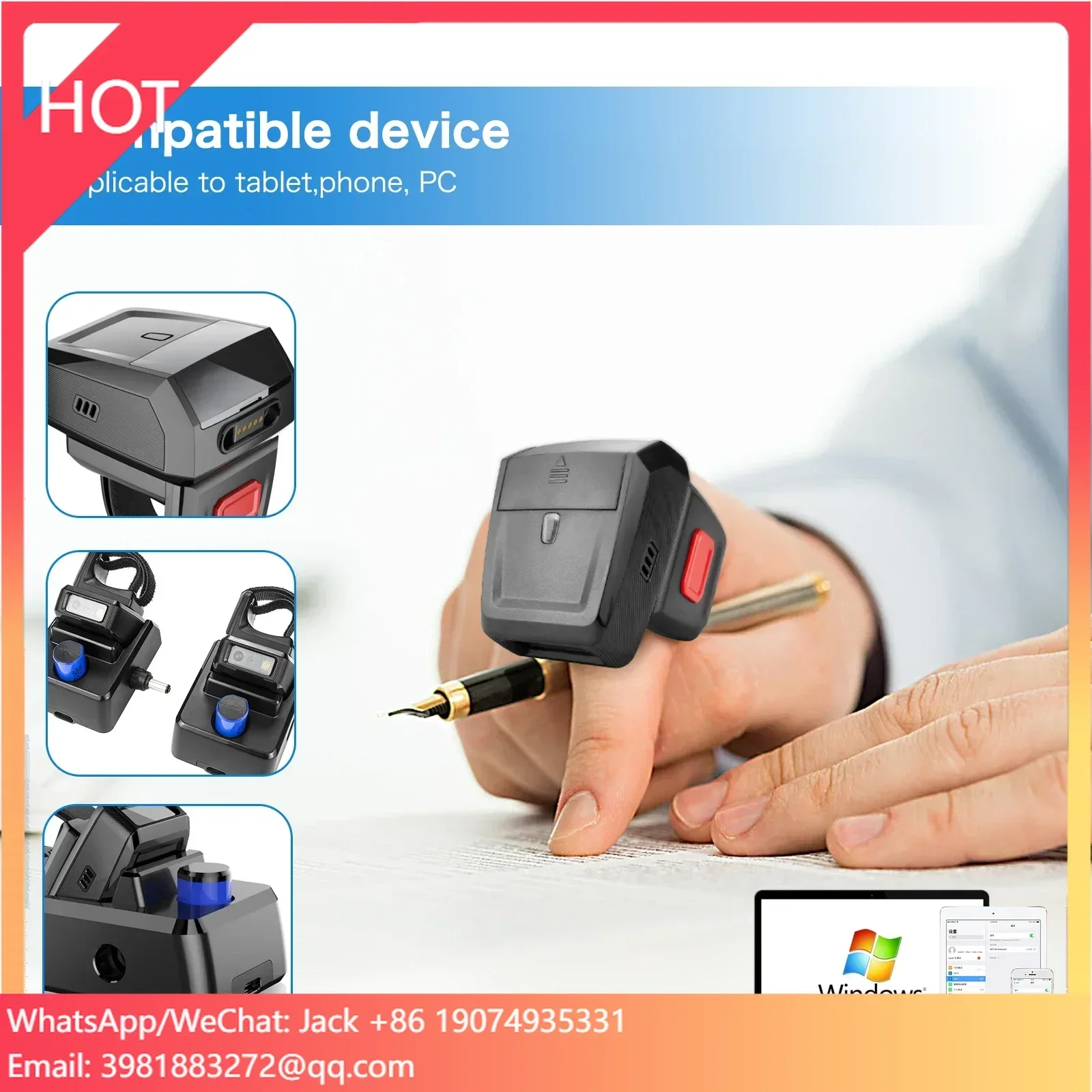 NETUM Bluetooth draadloze 2D barcode-ringscanner met Zebra-engine, compatibel met Bluetooth-functie en 2,4 GHz voor Windows