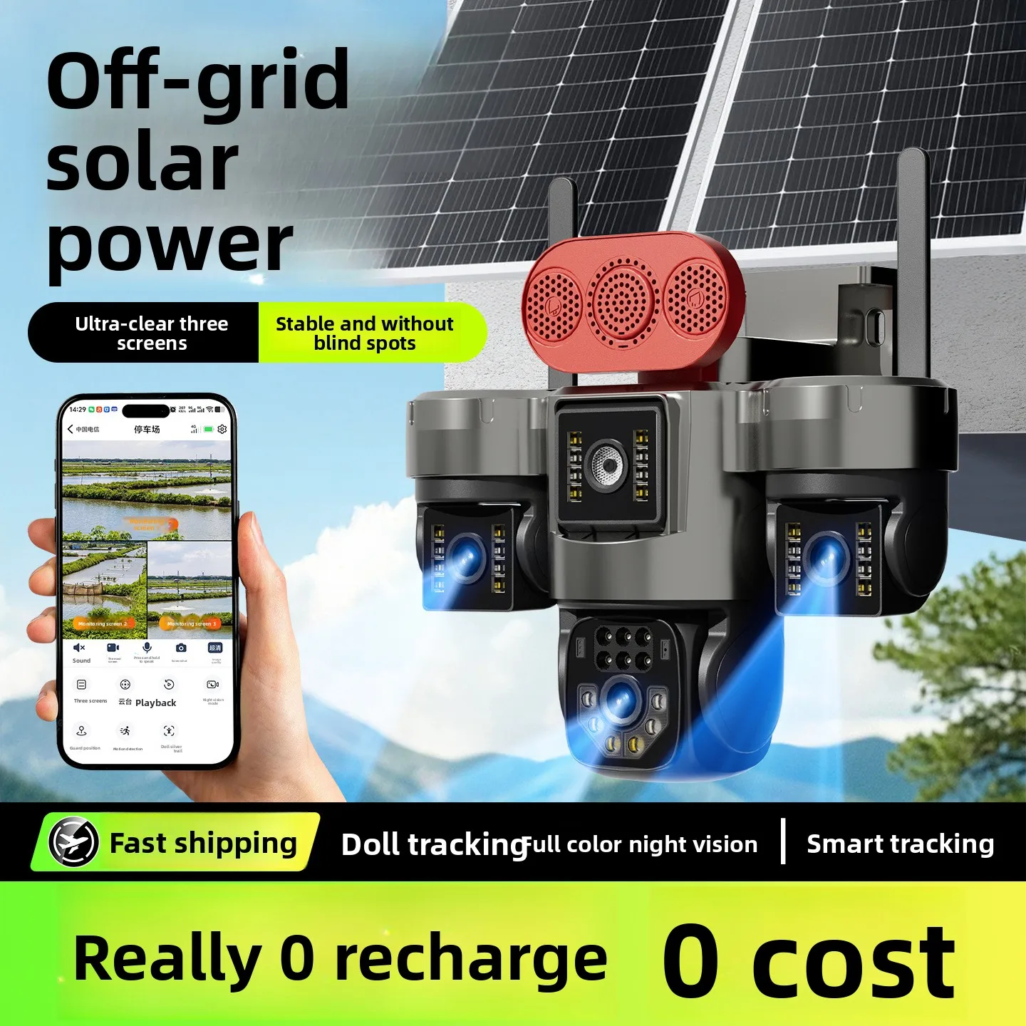 Solar Free Data CCTV-camera, voor thuisgebruik, HD nachtzicht, op afstand bekijken via telefoon