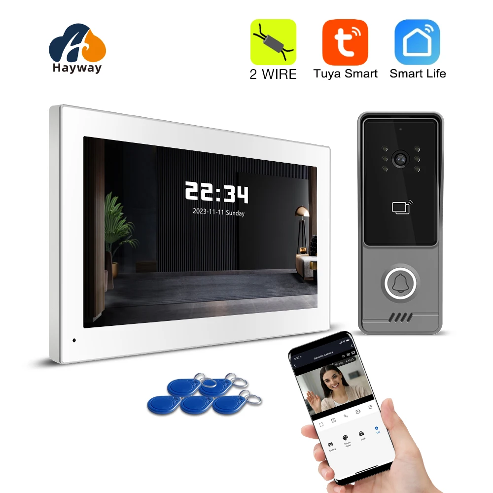 Tuya Wifi Smart Home Video Deurtelefoon Video-intercom 1080P Touch Monitor 7' 2-draads Deurbel Deurcamera Beveiligingssysteem