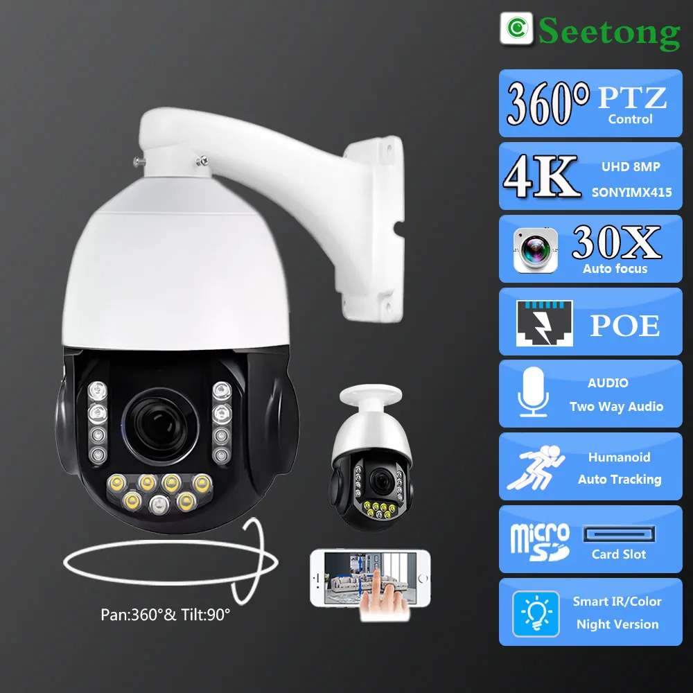 Seetong 4K 8 MP So-ny415 Beveiligingsvideo 30X automatische zoom 360 ° POE PTZ Dome Tweeweg Audio AI Menselijke tracking IR/Kleur Nachtzicht