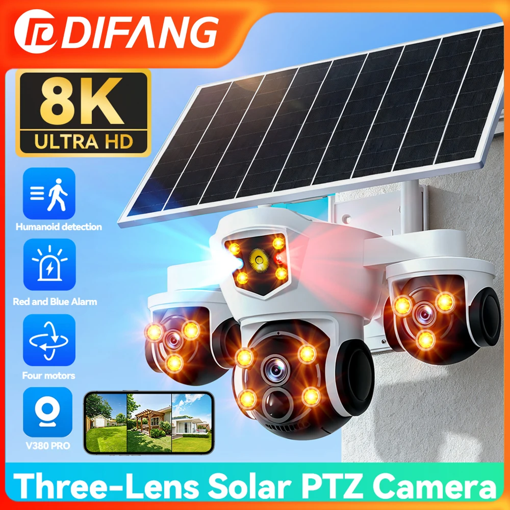 V380 Pro Drie lenzen Drie schermen WIFI Solar Camera12MP CCTV Outdoor Automatische tracking Humanoïde detectie Ondersteuning PTZ IP66 Cam