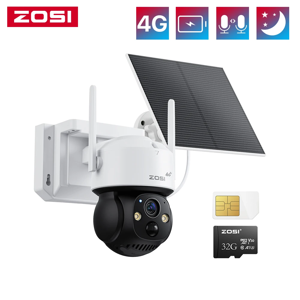 ZOSI 4G LTE Batterij Camera 15000mAh Opladen op zonne-energie 4MP 2.5K Waterdichte Outdoor Human Track Home Security CCTV Videobewaking