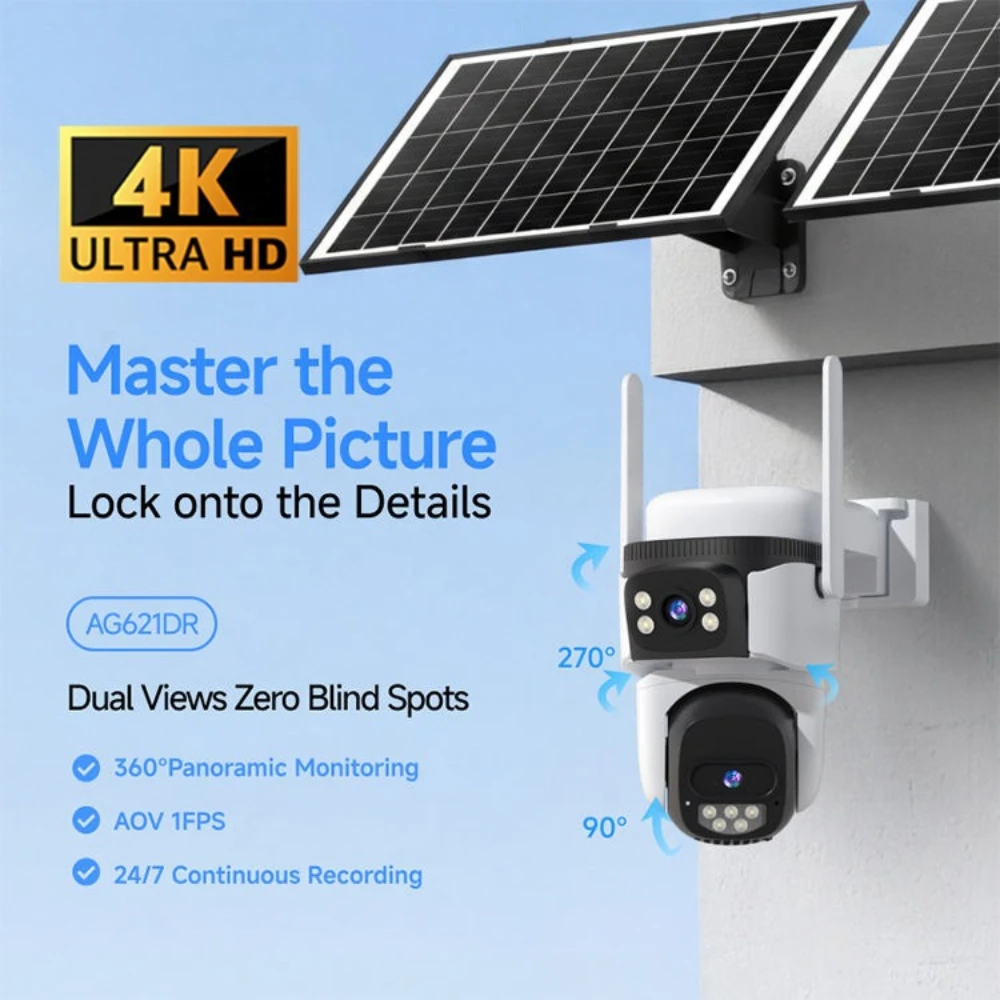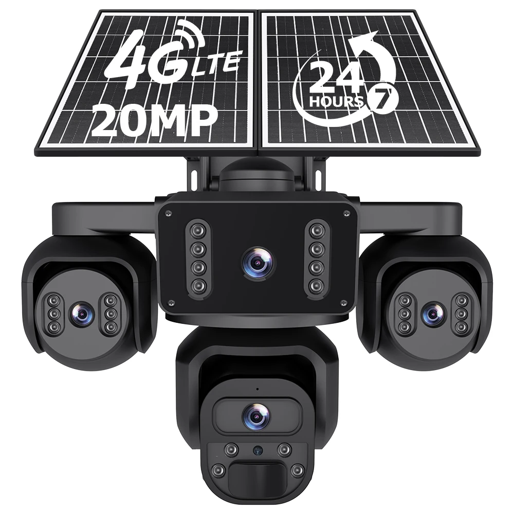 SECTEC 20MP 4 Schermen AOV Solar Beveiligingscamera's 4G 24/7 Opname Buiten Automatische Tracking 12W Zonnepaneel Batterij 20100mAh