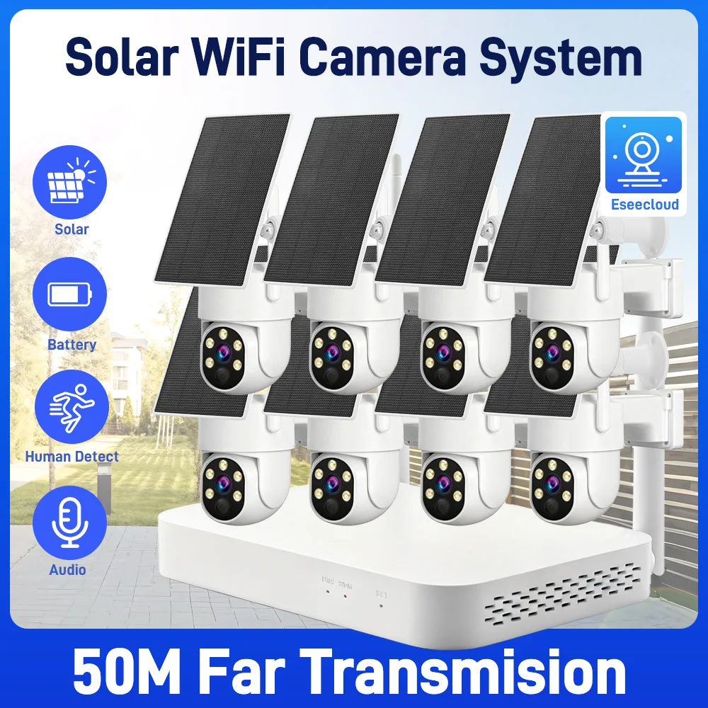 Draadloze camera op zonne-energie NVR-kit 2K 6MP Tweeweg audio PIR-detectie Buitenbeveiliging PTZ-camerasysteem 8CH draadloze NVR-kit
