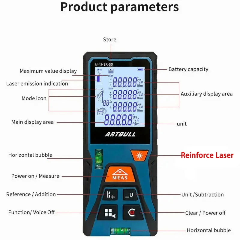 Rode Laser Meetlint 60m Laser Afstandsmeter Afstandsmeter Met Horizontaal
