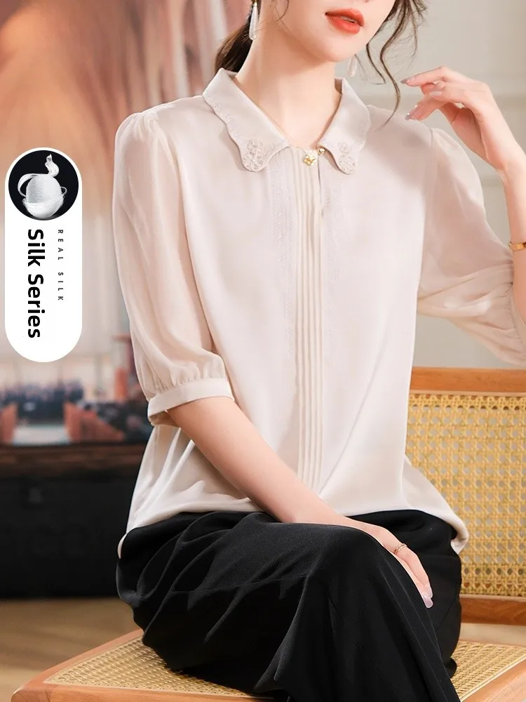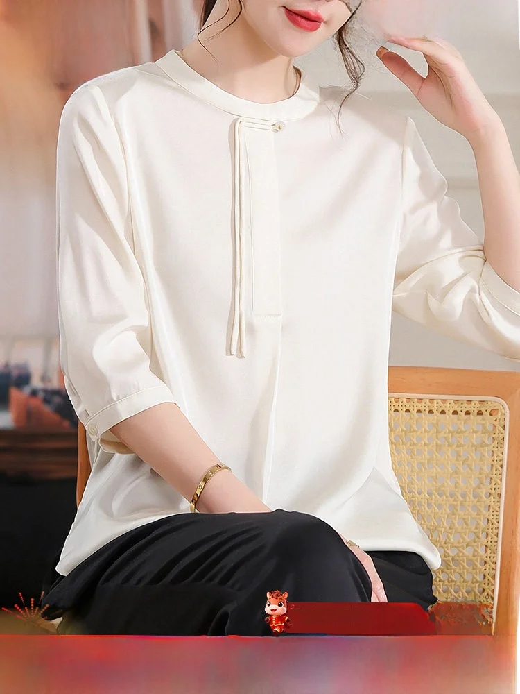 Ele Zijden Top voor vrouwen van middelbare leeftijd Hangzhou Mom Summer Faion Ladylike Zijden overhemd Vrouwen van middelbare leeftijd Nieuw 2025