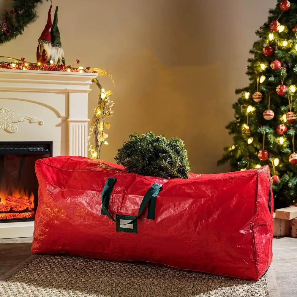 Robuuste opbergzak voor kerstboom, PE opvouwbare kerstorganizer met versterkte handgreep, waterdichte opbergzak voor cadeauverpakkingen