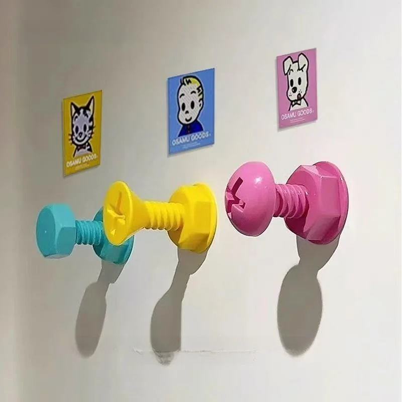 Creatieve schattige schroefnagel Kinderplezier Wandmontage Haak Tas Hangend Gatenponsen Opbergruimte Decoratie Plastic ...