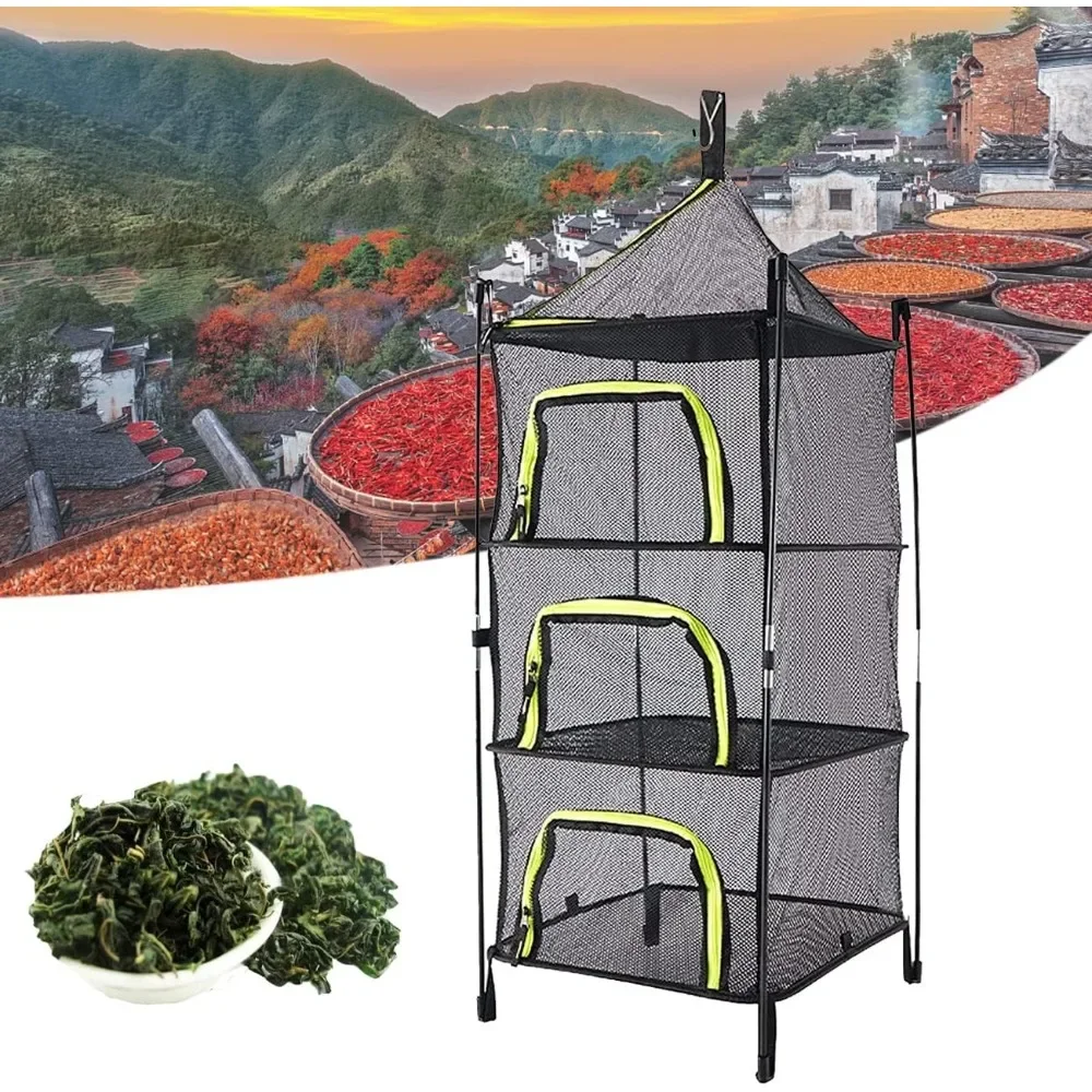 3 Tier Draagbare Kleding Hangende Droger Gevouwen Kruidenrek voor Knoppen Vruchten Hydrocultuur Bloemen Groenten Viskleding Pop