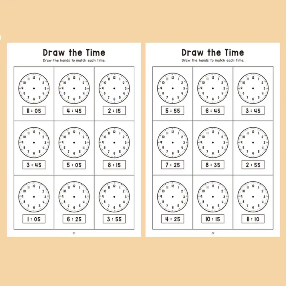 Vroegschoolse educatie Oefenboek voor het leren van de tijd Interactief leren Tijdleerkaarten Trainingskaarten Tijdconversie Wiskunde-oefeningen