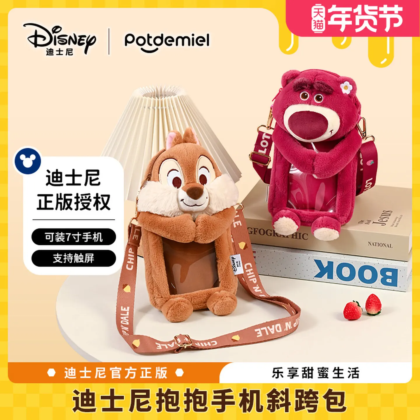 Originele Disney Holiday Gifts officiële originele Strawberry Bear Chichtiti pluche cartoon crossbody damestas voor mobiele telefoon cadeau
