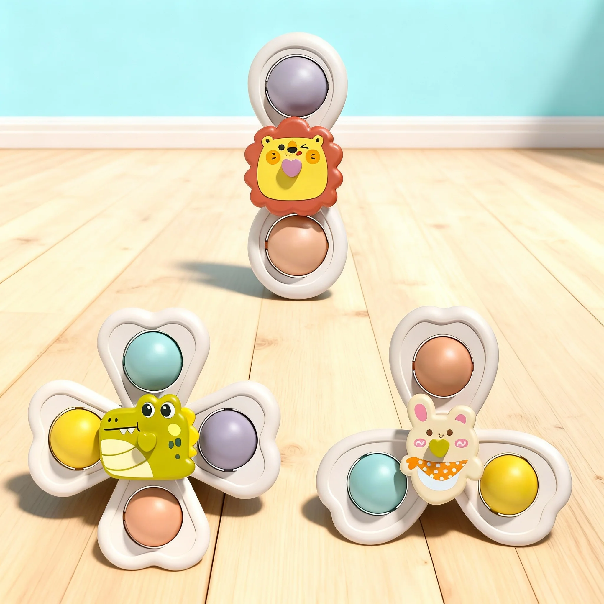 3PCS zuignap roterend speelgoed voor baby hand-oog coördinatie educatieve training, bad- en reisspeelgoed, verjaardag kerstcadeau
