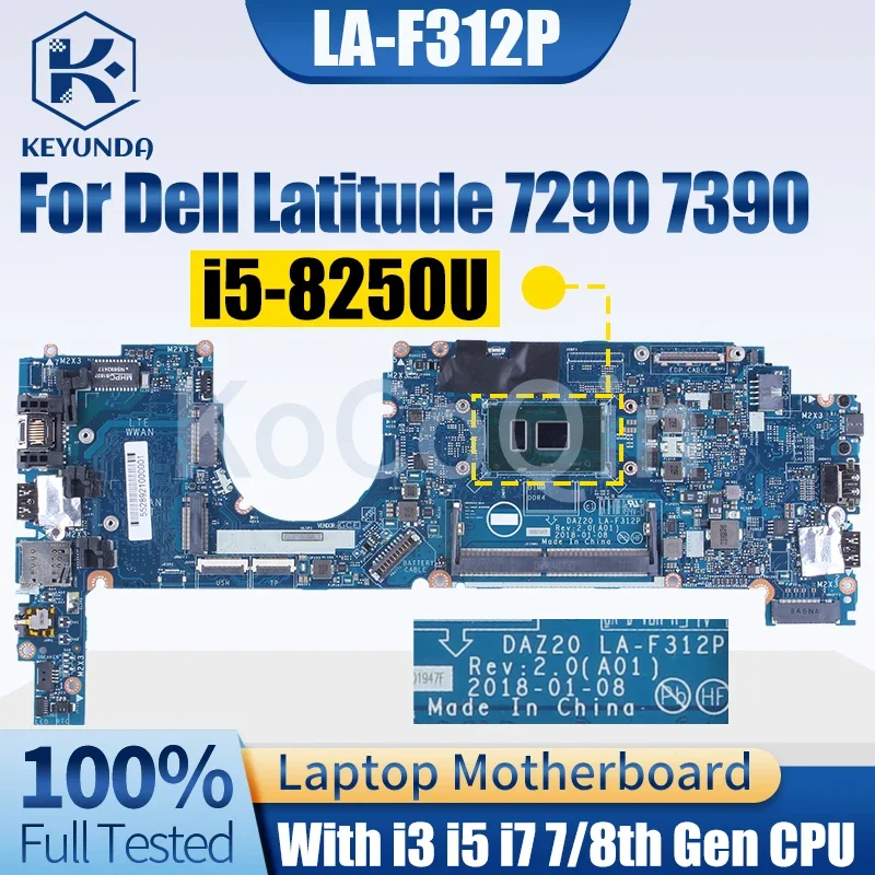 LA-F312P Voor Dell Latitude 7290 7390 Notebook Moederbord LA-F311P I3 I5 I7 0T64M2 0YFP8K 0X225X Laptop Moederbord Volledige Getest