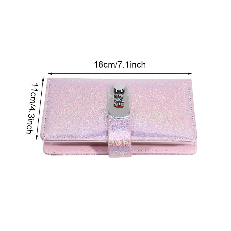 Glitter Cash Saving Binder met wachtwoordvergrendeling, PU-omslag PVC binnenpagina's Geldorganizer, 100 enveloppen Challenge Savings Binder