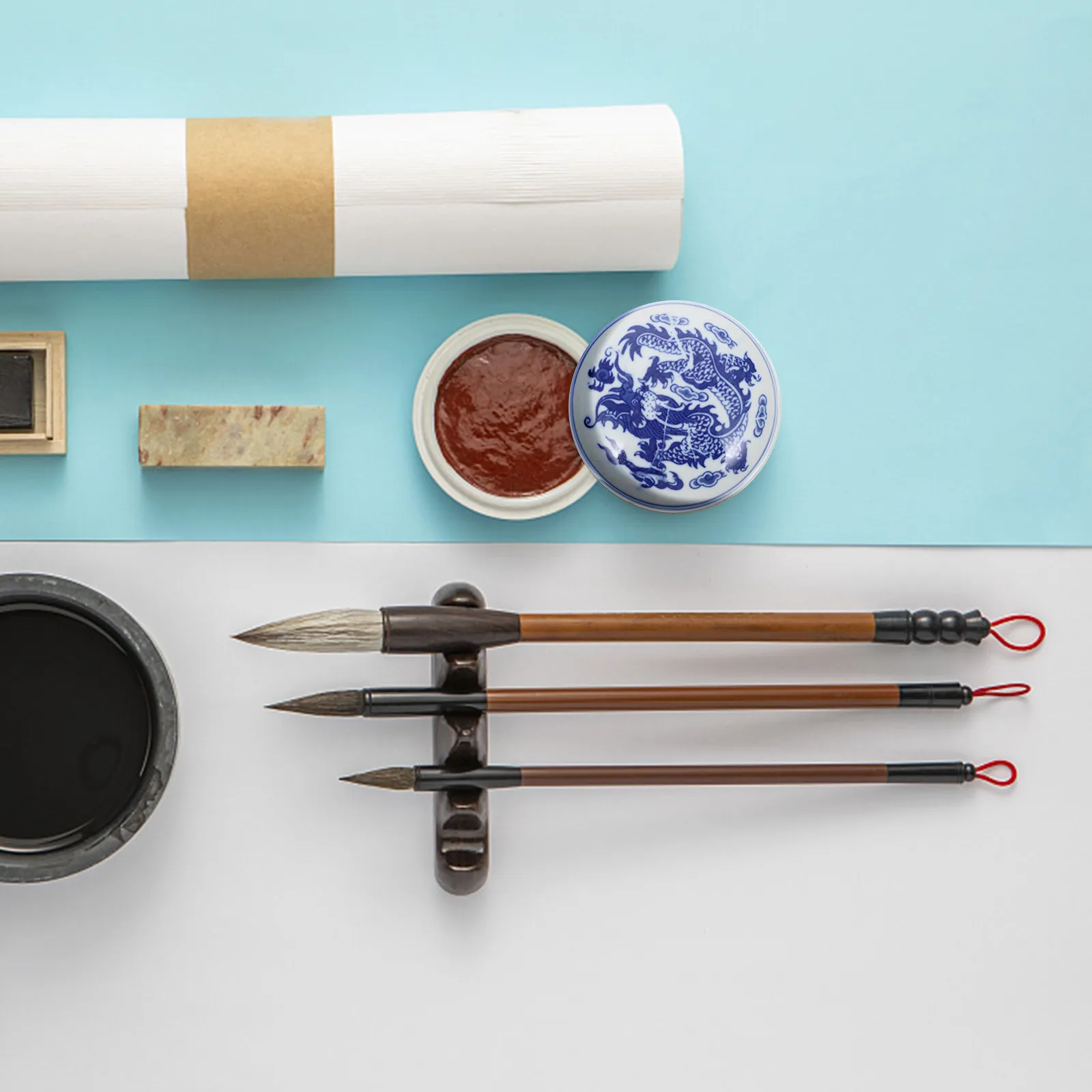 Chinese Stempelkussen Opbergdoos Hoogwaardig Porselein Materiaal Gladde Afwerking Gemakkelijk Onderhoud Creatief Uniek Ontwerp voor Kalligrafie