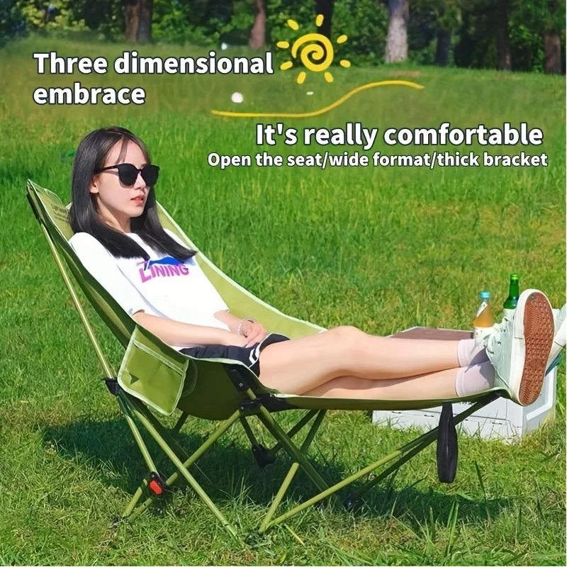 Draagbare verstelbare opvouwbare maanstoel voor kamperen, vissen en ontspanning buitenshuis - stalen frame, beensteun met 4 standen