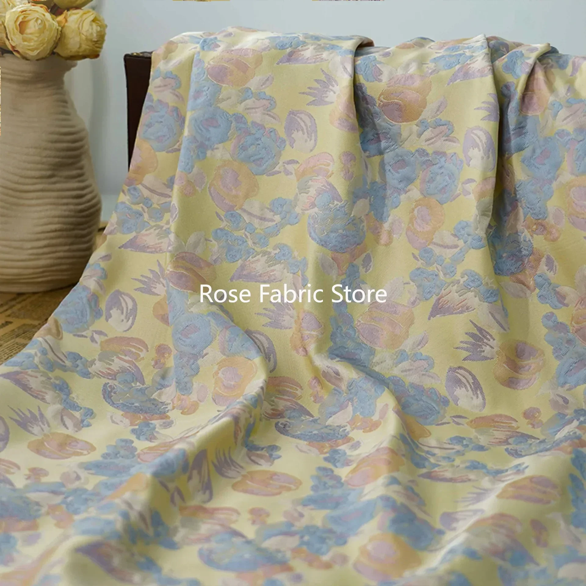 1 meter frisse gele geweven jacquardstof damesjurk pluizige roktas decoratieve naaistof