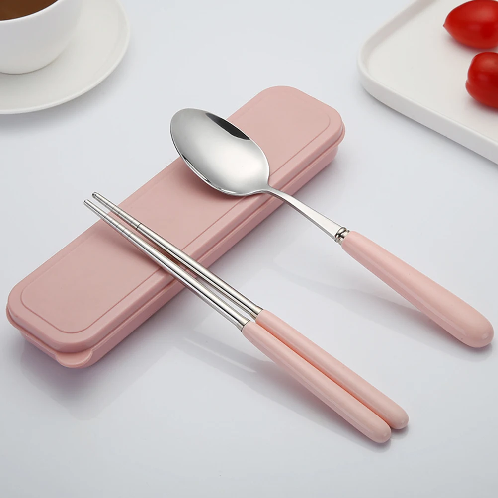1 set roestvrijstalen bestekset met lepel en eetstokjes Compact ontwerp voor maaltijden onderweg Gemakkelijk schoon te maken Vaatwasmachinebestendig