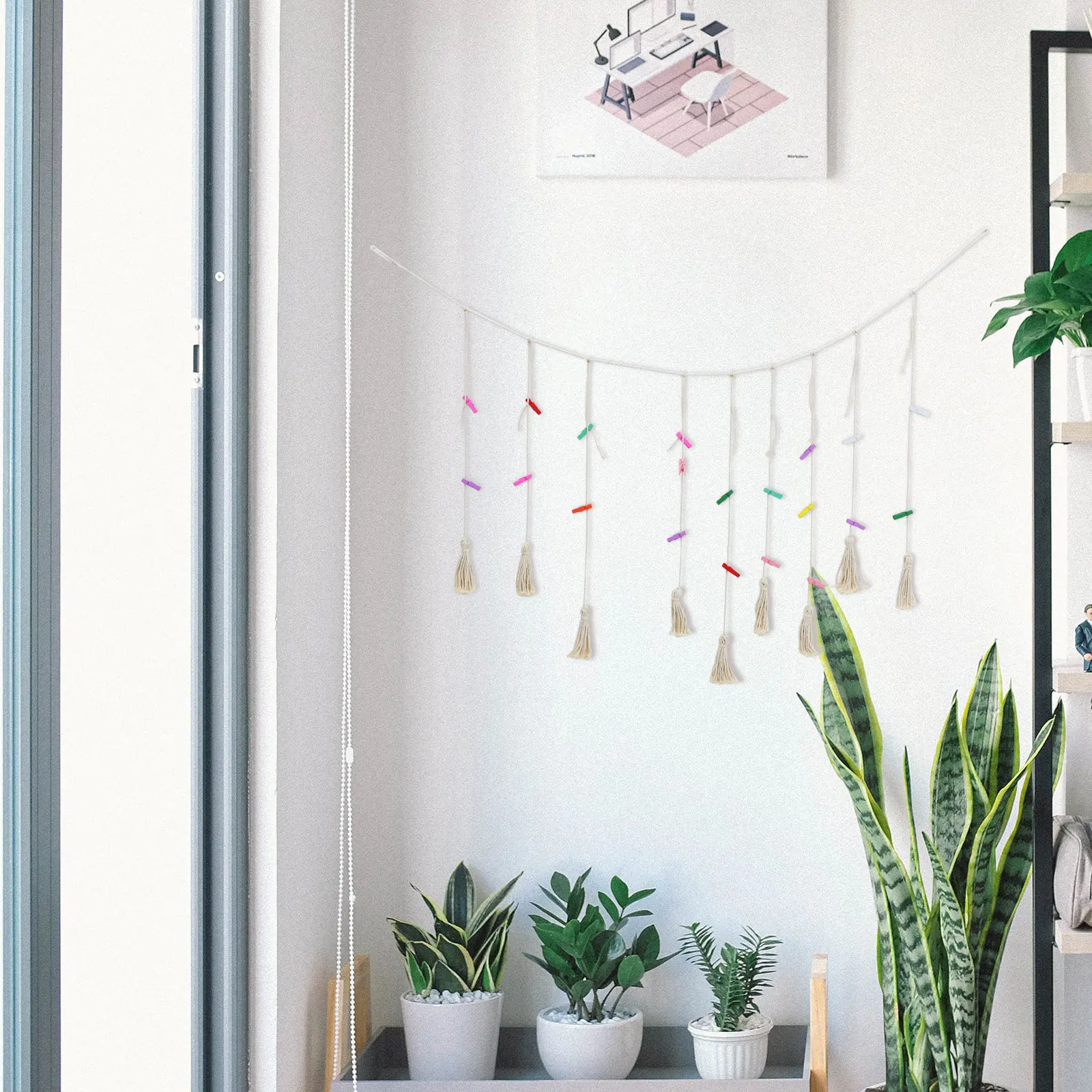 1Set houten touw fotowandophanging met kwastjesclips Boheemse boerderijhuisdecoratie voor bruiloft Valentijn Kerstmis