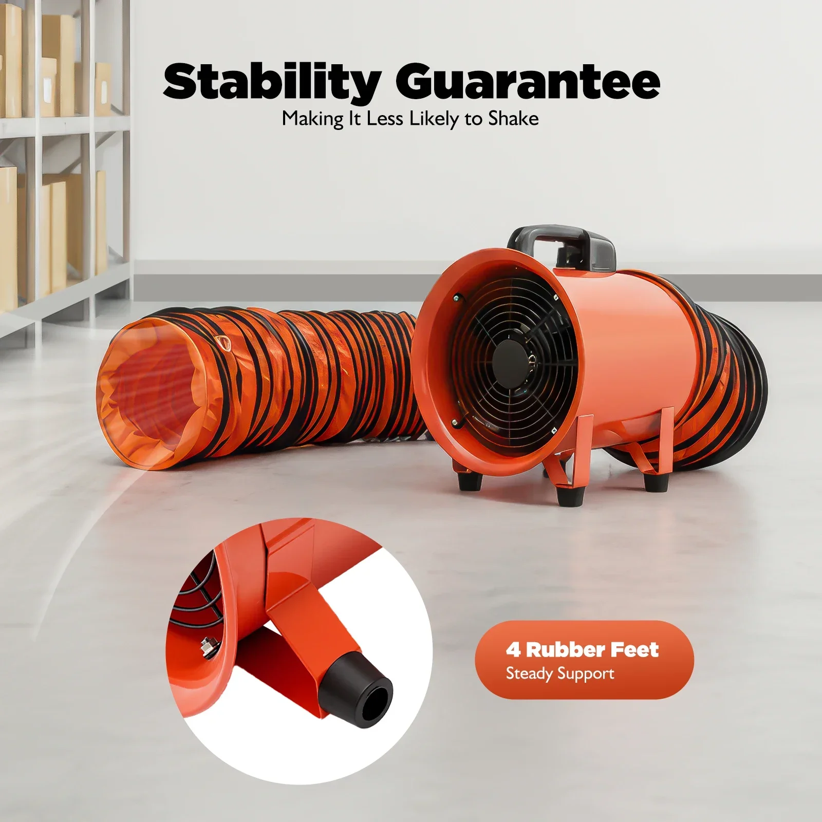 BYMAOCAR draagbare ventilator, zuiver koperen motor, 320 W oranje blower, 294Pa250mm/9.84in, blower met kanaalslang voor fabrieken, kelders