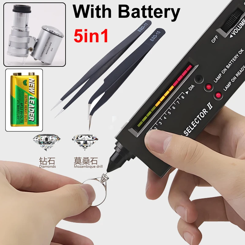 Diamond Tester Hoge Nauwkeurigheid Diamond Tester Pen Sieraden Professionele Diamond Selector Kit + batterij + 60x vergrootglas + Pincet