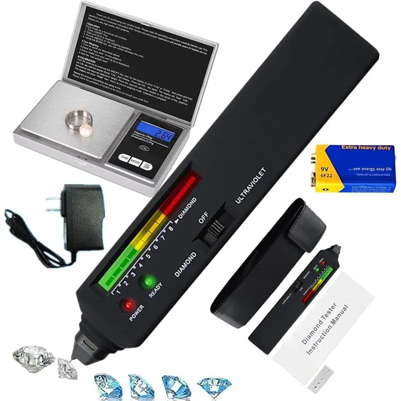 ABGH-Fast 0,5S detectiediamanttesterpen met 365Nm UV-licht en thermische sensor, 200G / 0,01G miniweegschaal voor beginners en experts