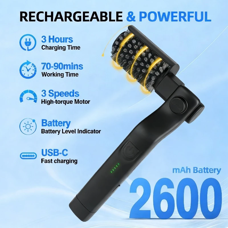Elektrische grillborstel 2 in 1 draadloze oplaadbare grillreinigingsborstel roestvrijstalen borstelkop 3-snelheden vermogen voor BBQ-roosters