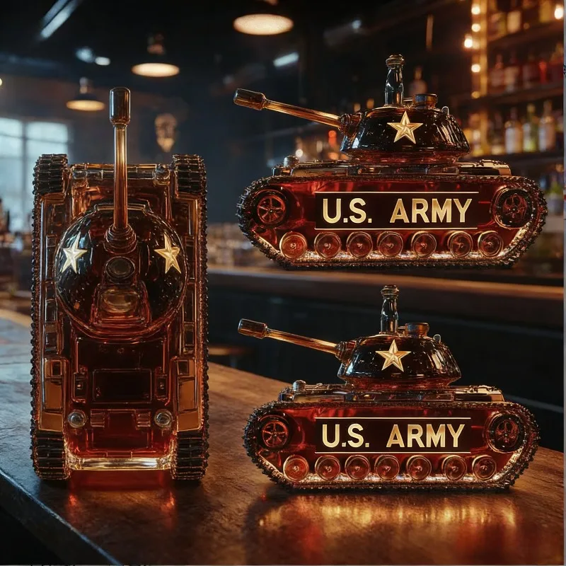 Militaire stijl U.S. ARMY tank kristallen whisky decanter - creatieve glazen likeurfles met gouden ster decoratie, bar thuis feest cadeau