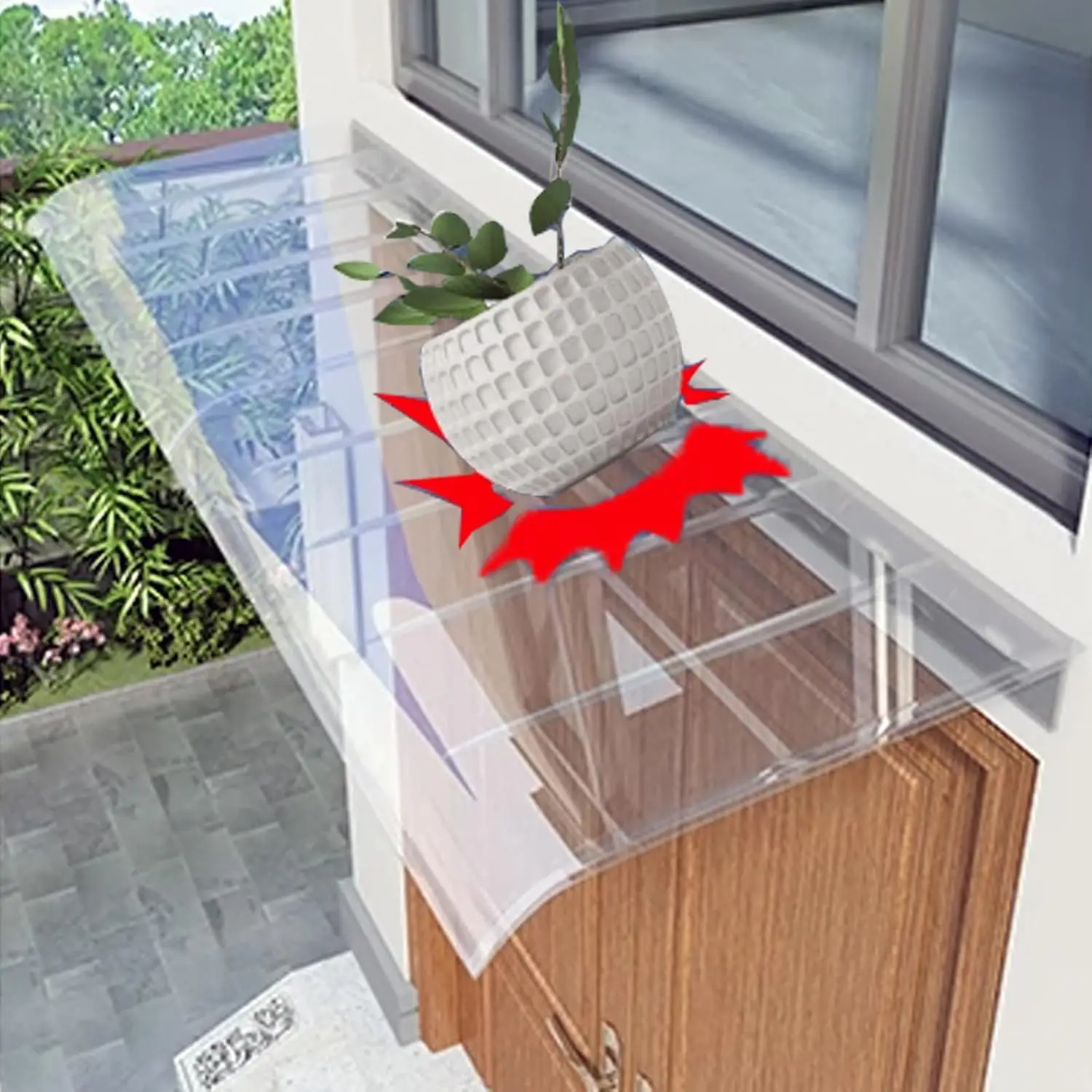 Transparante overkapping voor de voordeur, polycarbonaat luifel ter bescherming tegen regen, geluidsdichte dakoverkapping, 5