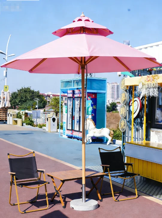 Zware aluminium parasols met houtnerfcoating, groothandel, geschikt voor buitengebruik, tuurbruiloften, stranden, restaurants.