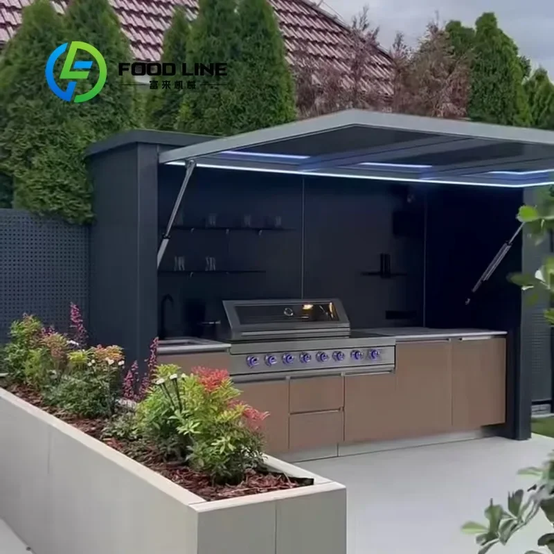 Op maat gemaakte nieuwe aanwinsten: roestvrijstalen buitenkeuken met BBQ-grill & waterdichte overkapping voor patio, tuin en achtertuin