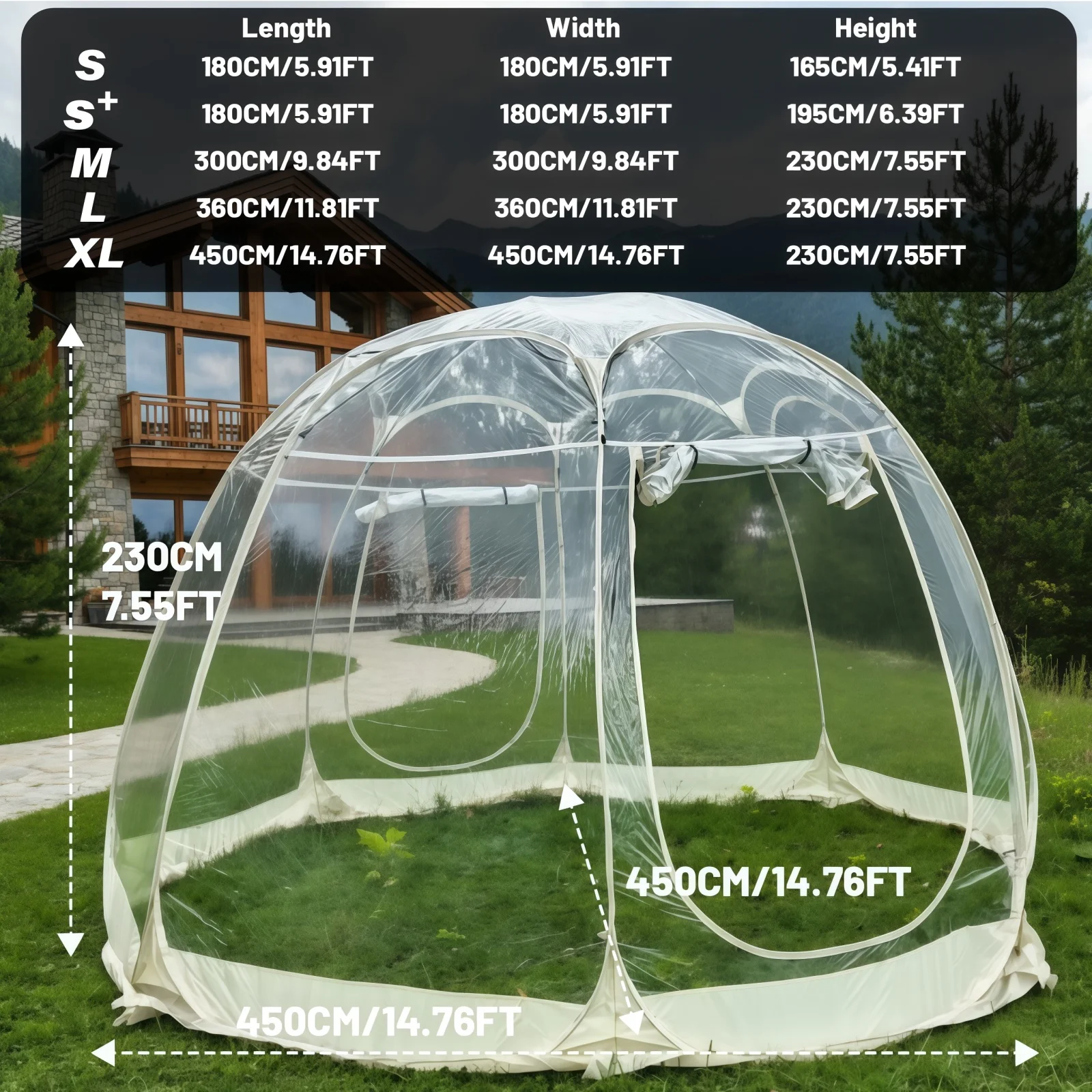 Grote instant opzetbare bubbeltent, weerbestendig, buiten-iglo, extra grote campingpod, patio-scherm voor bescherming tegen kou