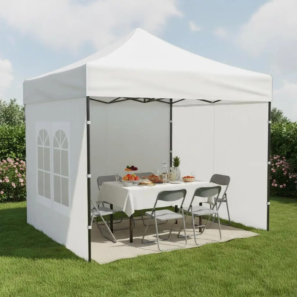 Vouwbare feesttent met wanden, wit, 2x2 m, ideaal voor evenementen, festivals en feesten.