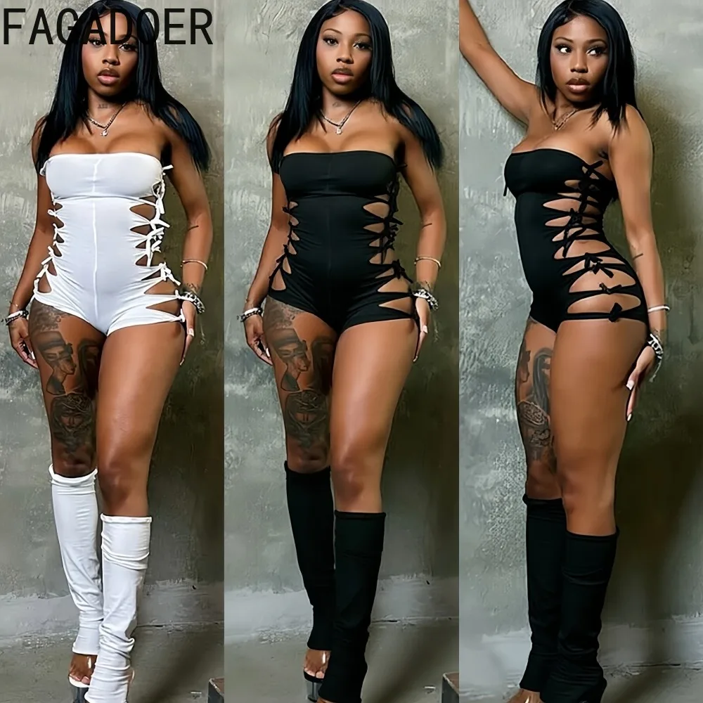 FAGADOER Sexy Hollow-out Patchwork Rompertjes voor Vrouw See Through Mouwloze Backless Jumpsuits Vrouwelijke Streetwear Overalls 2026