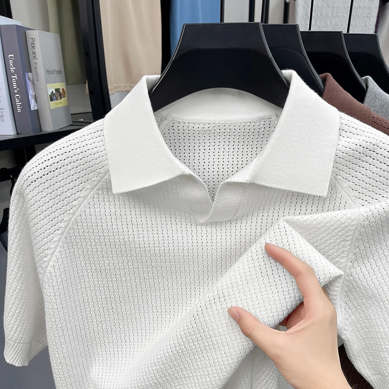 Amerikaans retro ananas-naald poloshirt heren gebreid t-shirt met zeemeeuwenkraag, korte mouwen, zomer, nieuwe effen kleur top