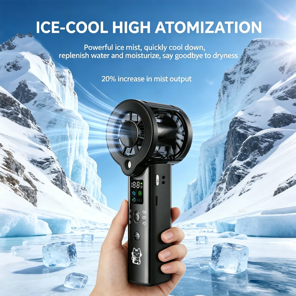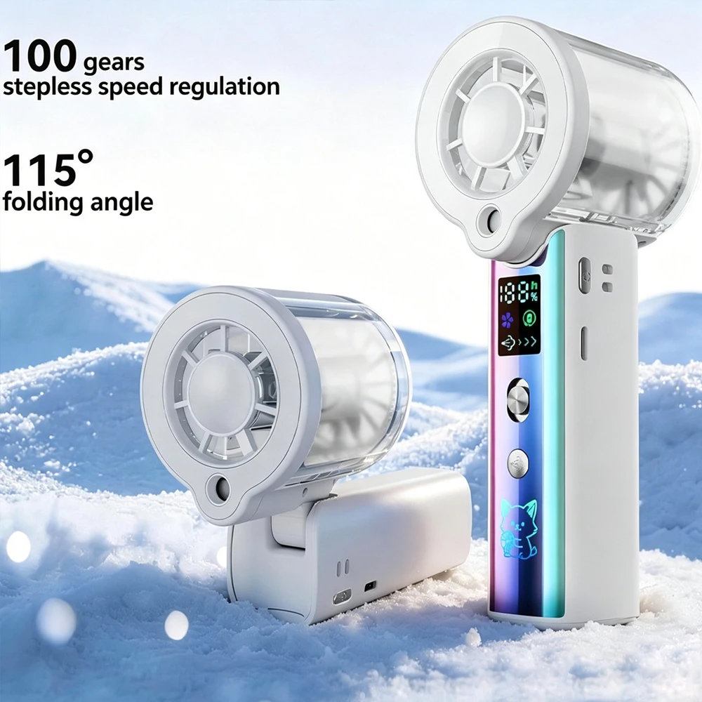 Handheld elektrische ventilator Koelwateraanvullende sproeiventilator 3000 mAh Oplaadbare sproeiventilator 100 snelheden Kleine ventilator voor thuis en buiten