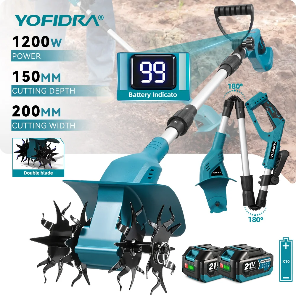 YOFIDRA Elektrische Tuinfrees Rototiller Cultivator Multifunctionele Draadloze Verticuteermachine Tuingereedschap Voor Makita 21V Accu