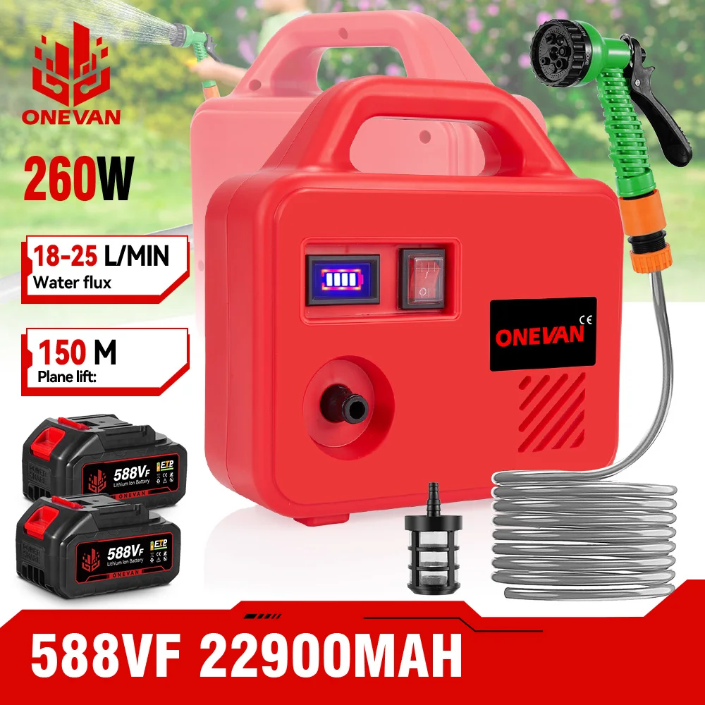 ONEVAN 260W 150M Elektrische Waterpomp Draadloze Watering Machine 21V Oplaadbare Tuin Watering Gereedschap Voor Makita 18V Batterij Pin