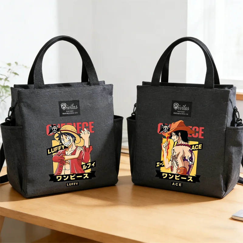 Eendelige lunchdrankdrager Luffy bedrukte geïsoleerde tas Draagbare verse koeler Picknickcontainer Tas Voedsel Thermische Box Tote Pouch