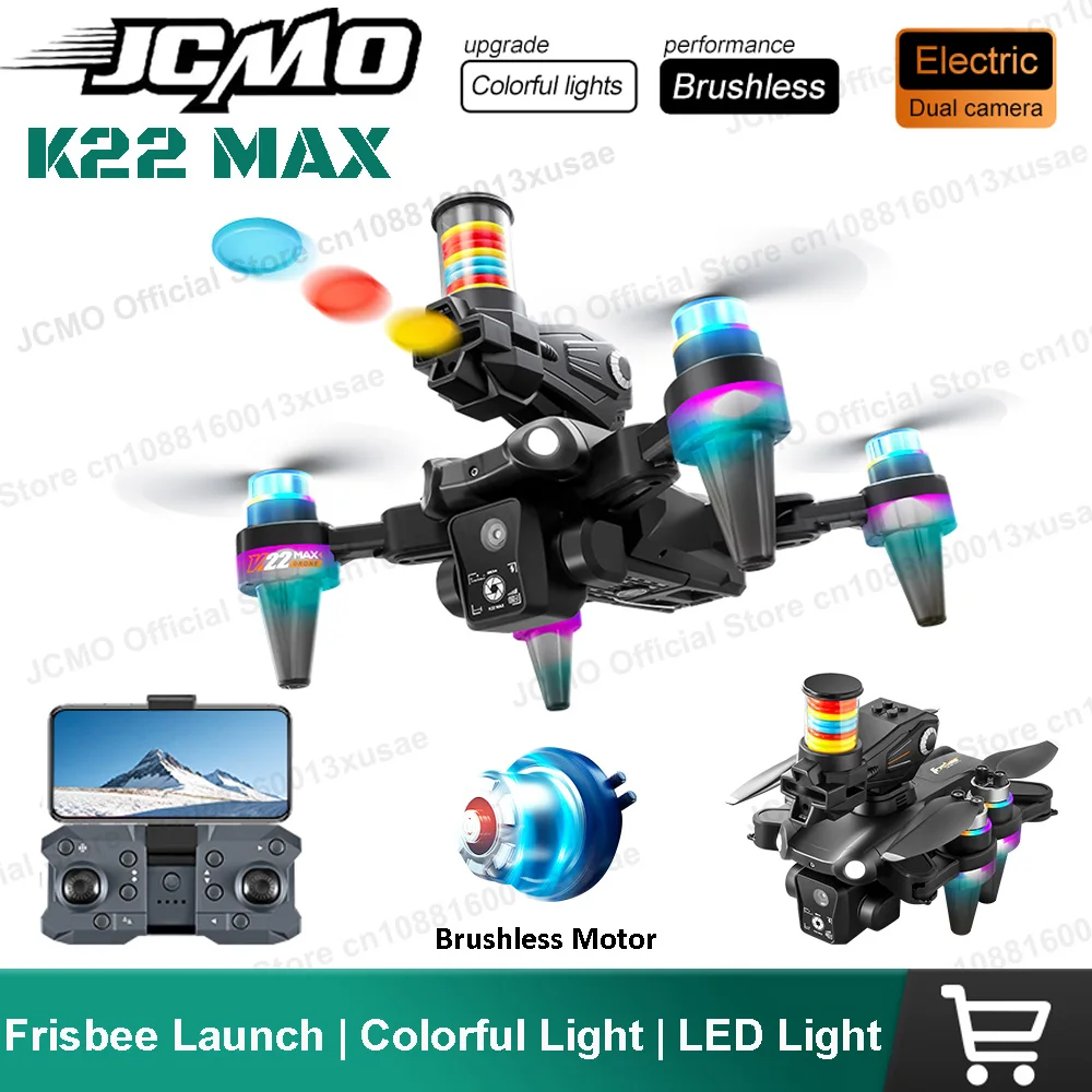 JCMO K22 MAX Frisbee Launch Drone Professionele HD Dual Camera Borstelloze Motor 2.4Ghz Afstandsbediening Quadcopter Speelgoed voor Kinderen Nieuw