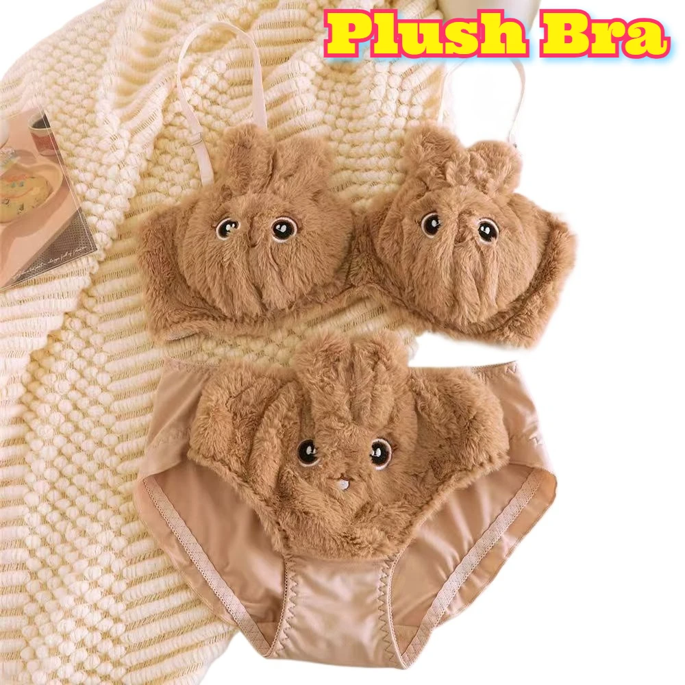 Dames Push Up Pluche Lingerie Set Bunny Grote Ogen Ontwerp Pure Sexy Stijl Afslanken Schattig Zoet Comfort Draadvrij Zacht Jeugdig Gezellig