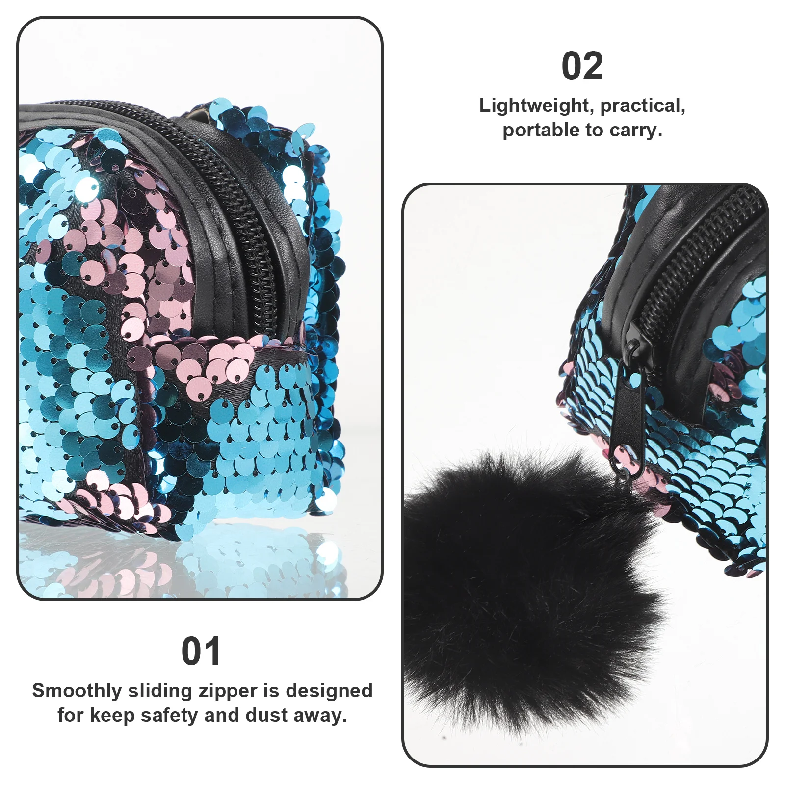Glanzende pailletten potloodtas blauw multifunctionele draagbare rits draagbare pennenzak muntopbergtas voor schoolkantoor