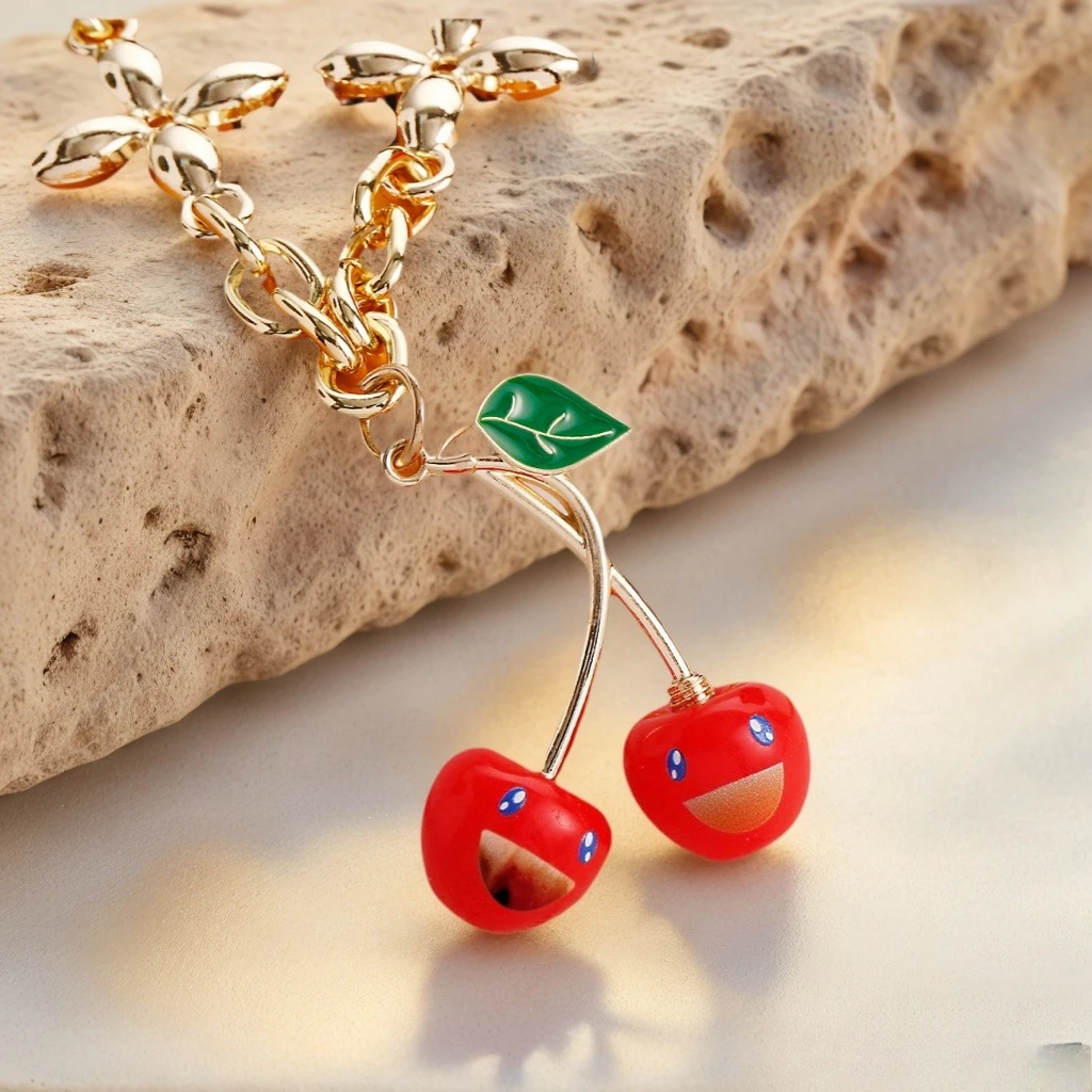 2025 Nieuwe Kersenhanger Dubbele Ketting Sleutelhanger - Modeontwerper Co-branded Tas Charm Accessoire