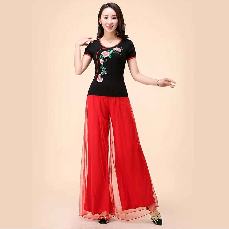 Lente Zomer Nieuwe Sle Square Dance Outfit Dames Geborduurd Ort Sve Latin Dance Netto Gaas Wijde Pijpen Broek Dansen Pra...