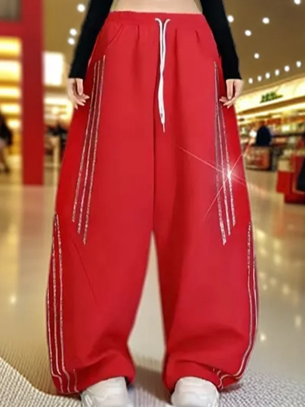 Yang Li Dameswijde Pijpen Square Dance Broek Nieuwe Stijl Sportkatoen Twill Herfst Winter Casual Knife Diamond Encrus...